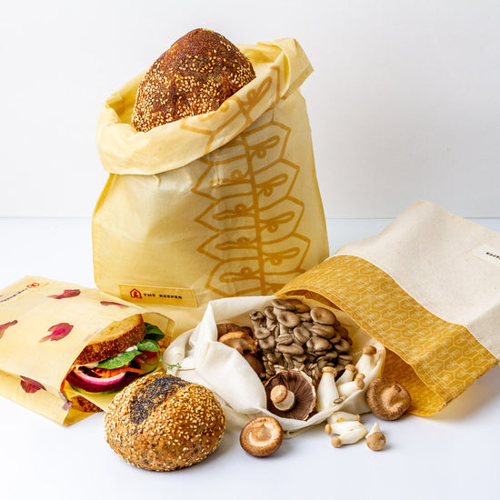 Our range of unique waxed organic cotton bags are functional and fun. Thoughtfully designed and tested. Explore our Bread Bag, Lunch Bag, Mushroom Bag pack and more.